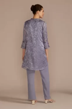 Sparkling sequins detail the illusion sleeves of a cropped knit jacket, perfectly matching the sheath dress’ scoop neckline. An elegant choice for any mother of the bride or groom.