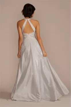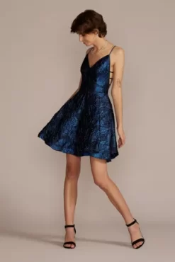 Threads of light-catching metallic weave through this floral-patterned brocade A-line dress. Perfect for any damas on the big day, enhance every twirl by adding an ADDONSLIP.